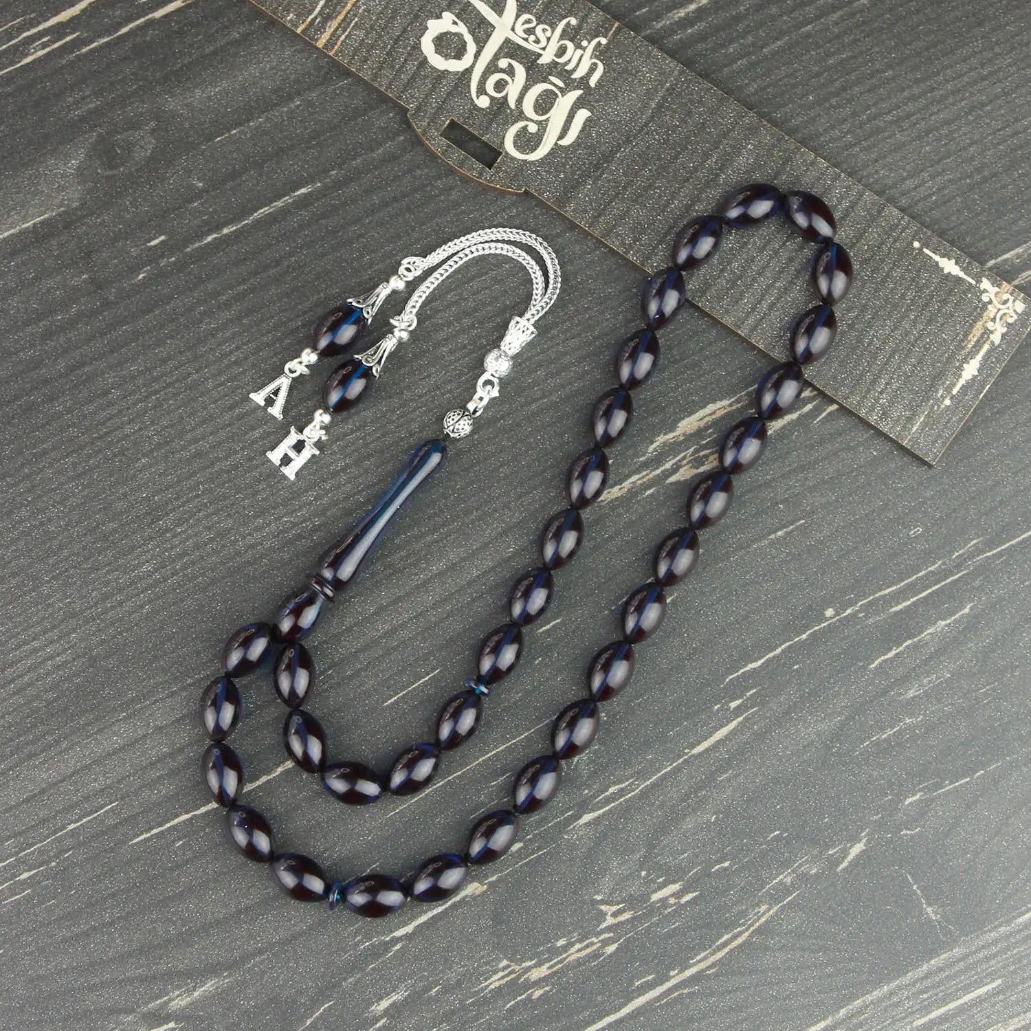 مسبحة العنبر الأزرق الناري بأحرف مخصصة