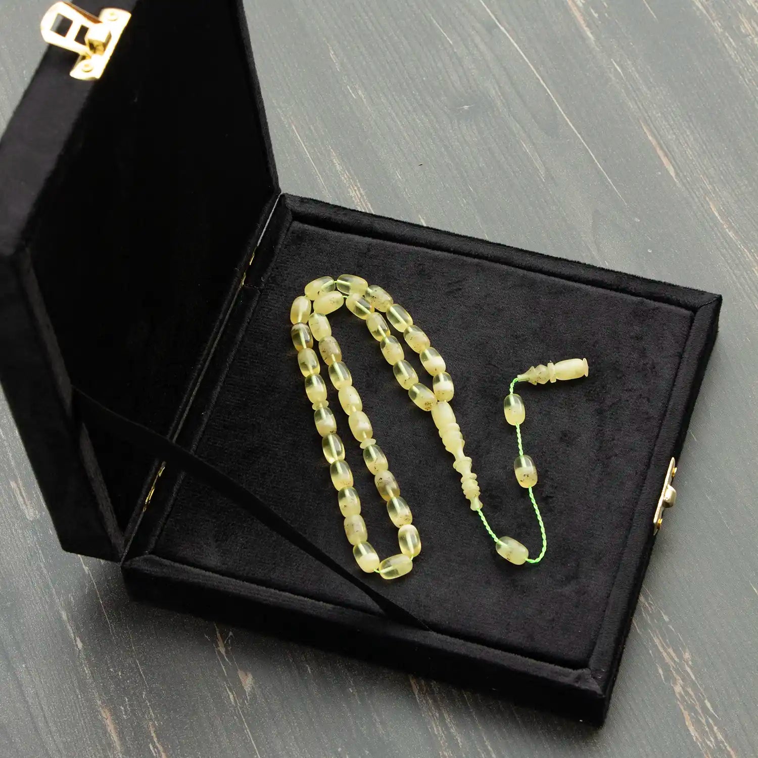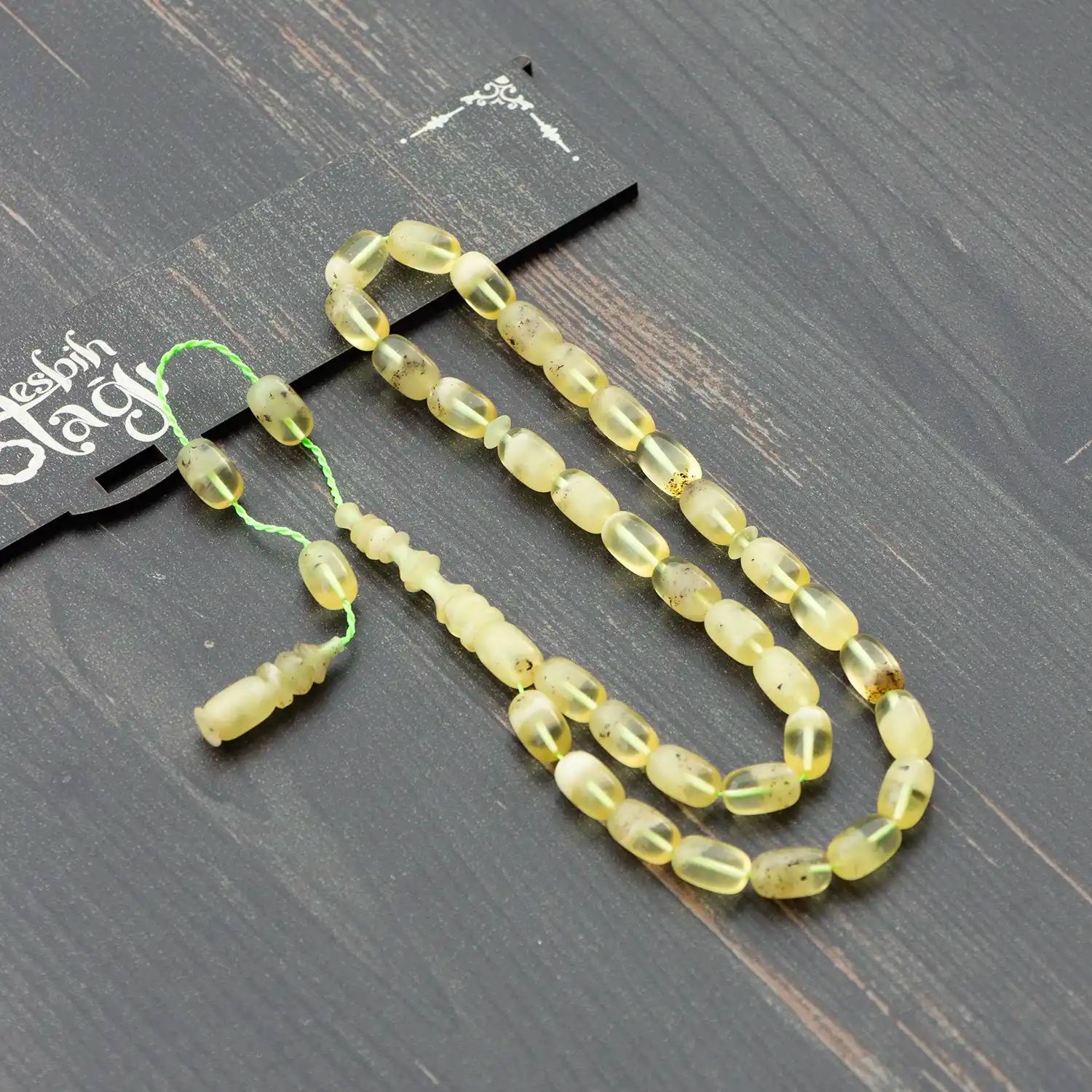 Bu model, doğal damla kehribar tesbihlerden farklı olarak; dayanıklılığı ve form stabilitesiyle günlük kullanımda uzun süre sorunsuz bir deneyim sunmak üzere tasarlanmıştır.