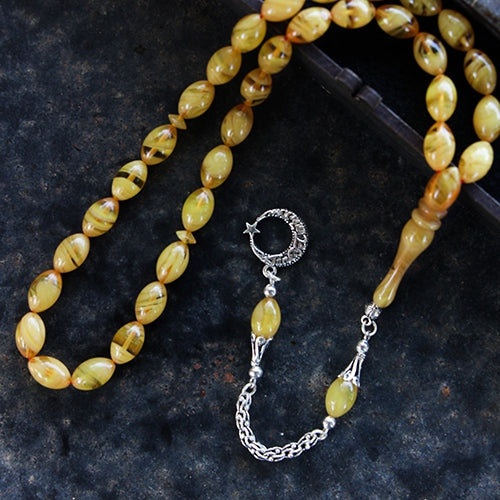 Orjinal Has Damla Kehribar Tesbih – Gümüş Püsküllü