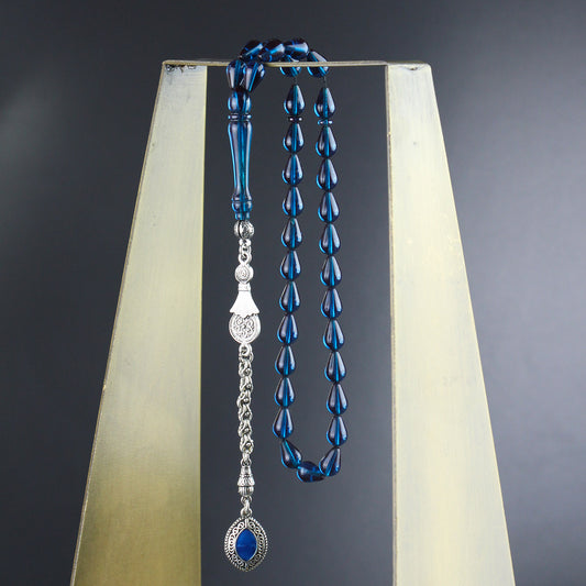 Damla Kesim Gümüş Kazaz Püsküllü Mavi Ateş Kehribar Tesbih