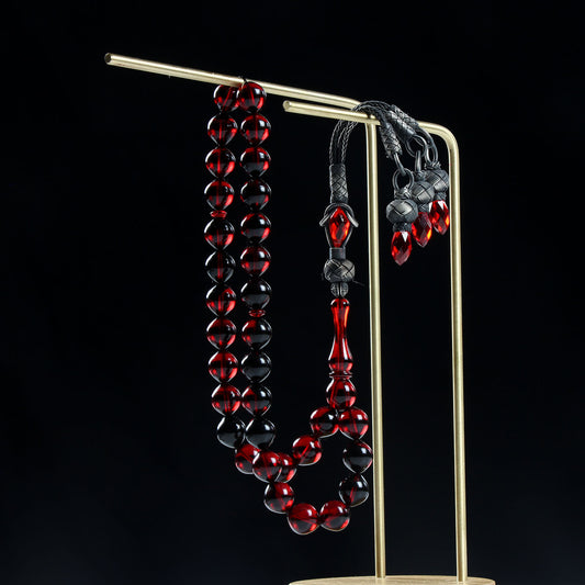 Gümüş Kazaz İşlemeli Kehribar Tesbih - Siyah ve Kırmızı