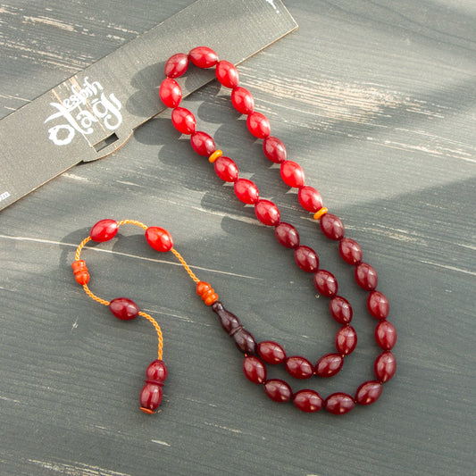 9x12 mm Usta İşi Osmanlı Benzetmesi Sıkma Kehribar Tesbih – Sistem Püsküllü
