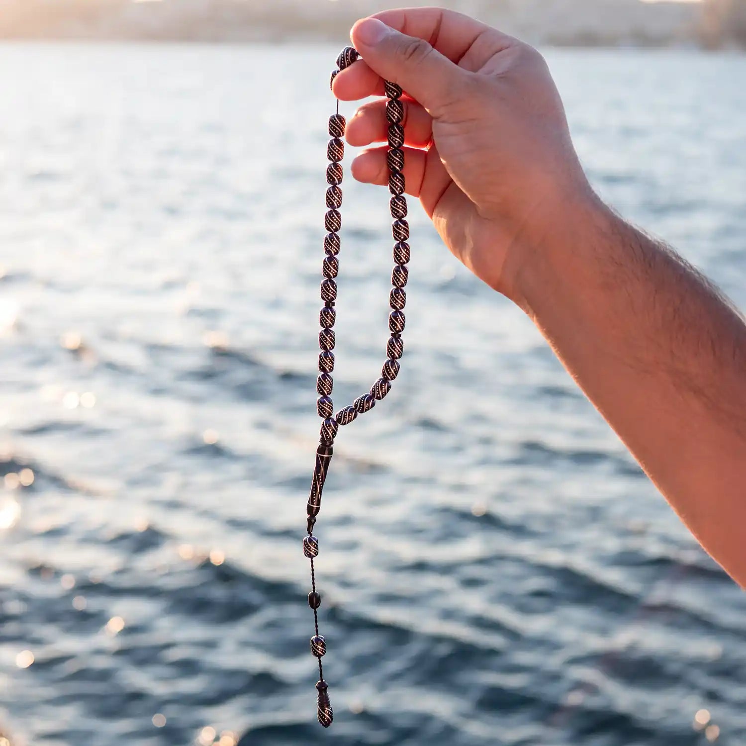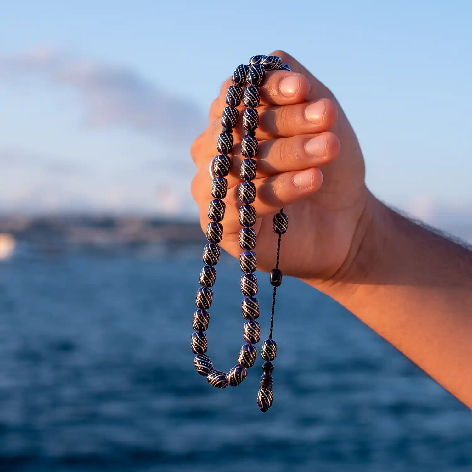 Asırlardır değerini koruyan Erzurum oltu taşı, ustaların maharetli ellerinde gümüş işlemelerle buluşarak eşsiz bir tesbih haline geliyor. Oltu taşının parlak siyah yüzeyi, gümüş detaylarla bütünleşerek hem estetik hem de anlamlı bir tasarım ortaya çıkarıyor.
