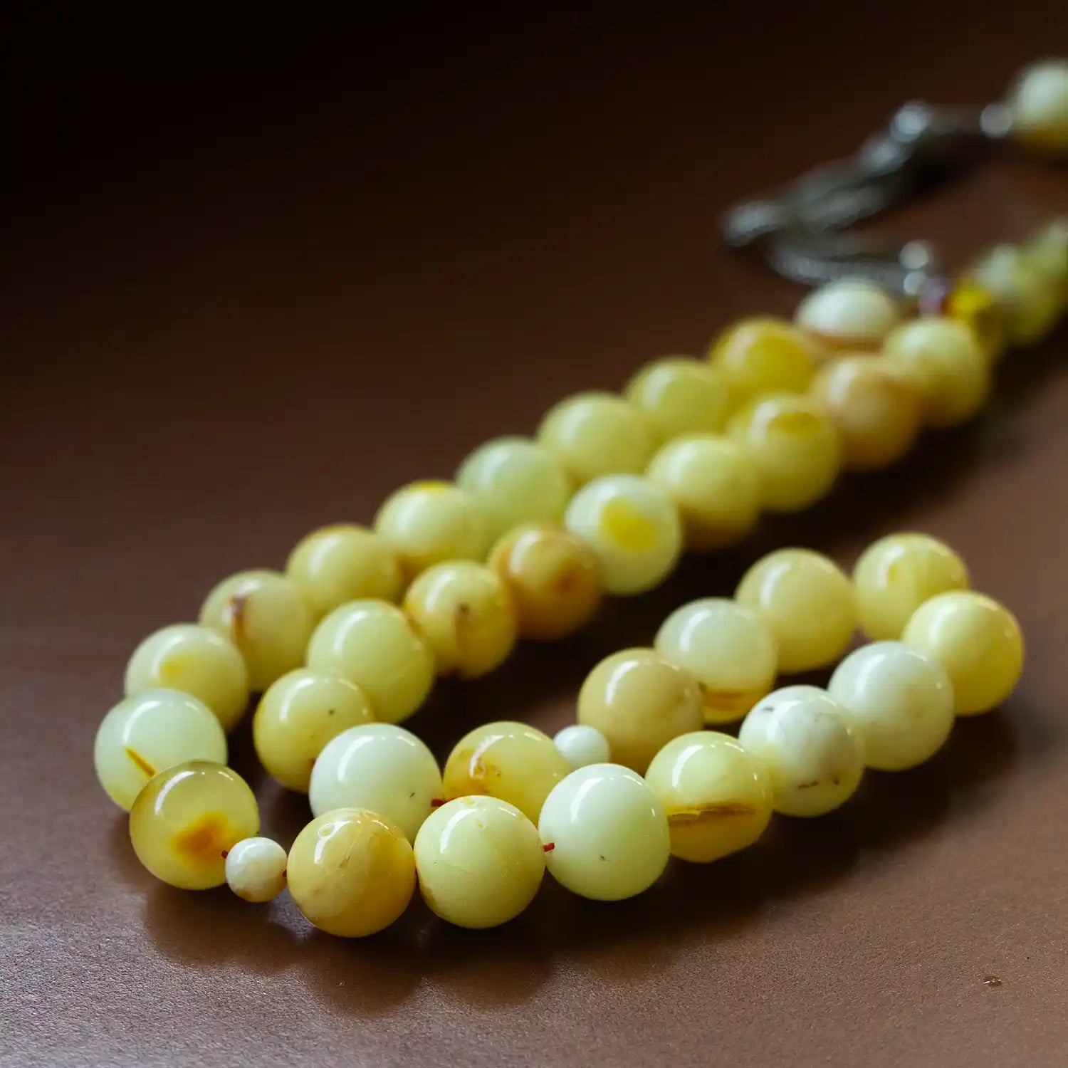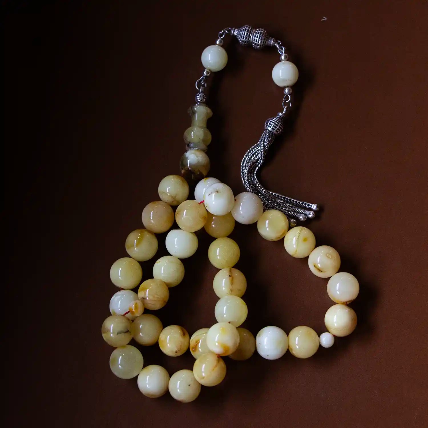 Orijinal has damla kehribardan üretilen bu tesbih, doğallığı ve zarafetiyle koleksiyon severlerin gözdesidir. Her biri ustalıkla işlenmiş 33 adet kehribar tanesi, özel parlaklıkta ve renk geçişlerinde doğanın eşsiz izlerini taşır.