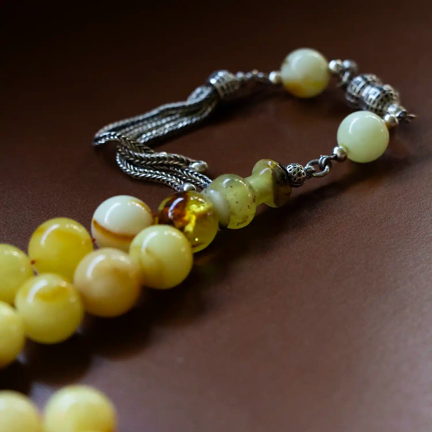 Orjinal Has Damla Kehribar Tesbih – Gümüş Püsküllü