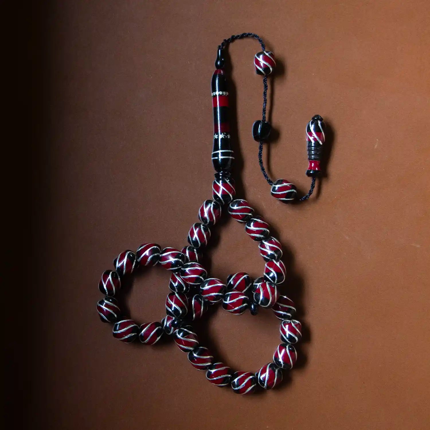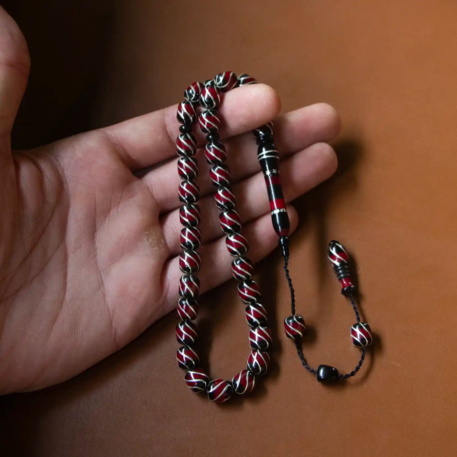Bu özel Sarmal Gümüş İşlemeli Erzurum Oltu Tesbih, usta ellerin zarif işçiliğiyle hayat bulmuştur.