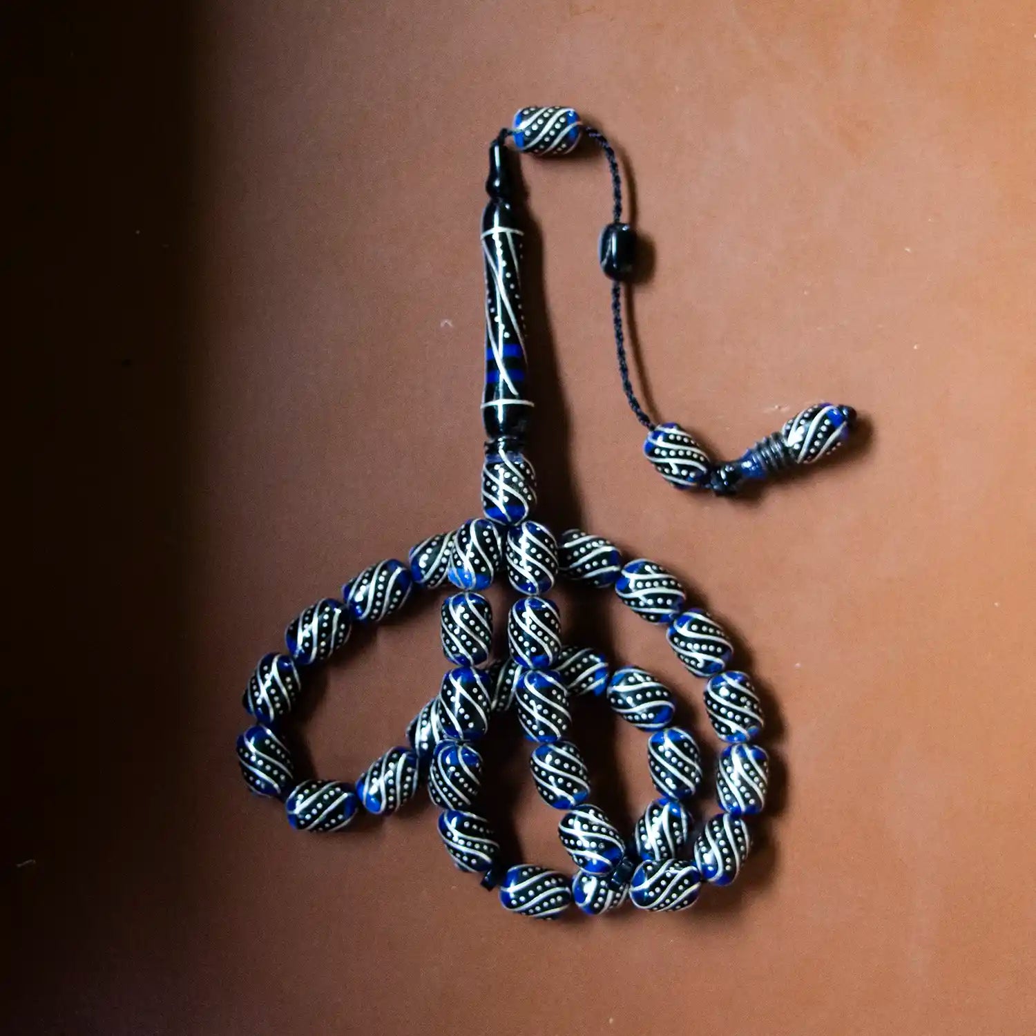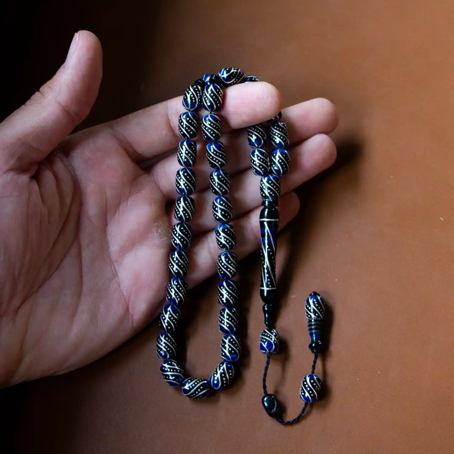 Bu özel Gümüş Çakımlı Erzurum Oltu Tesbih, usta Erzurum zanaatkârlarının elinden çıkan seçkin bir koleksiyon parçasıdır.