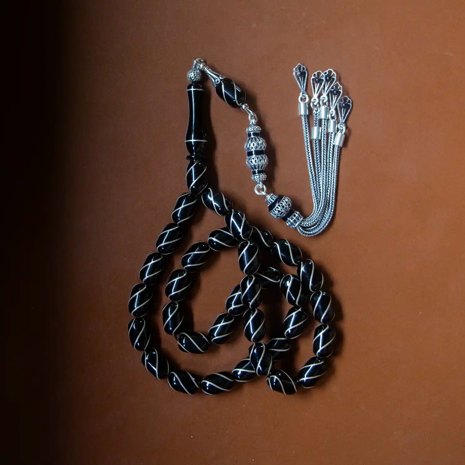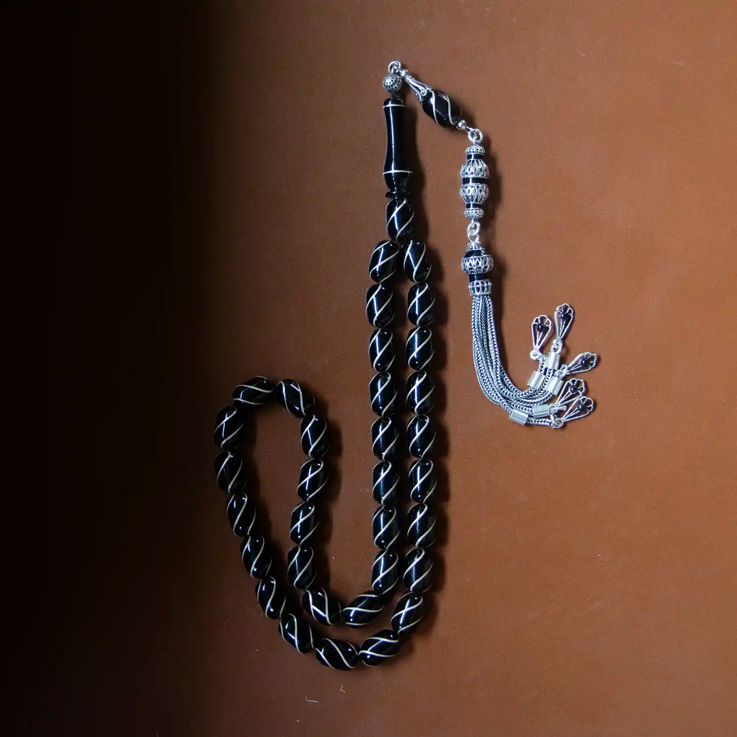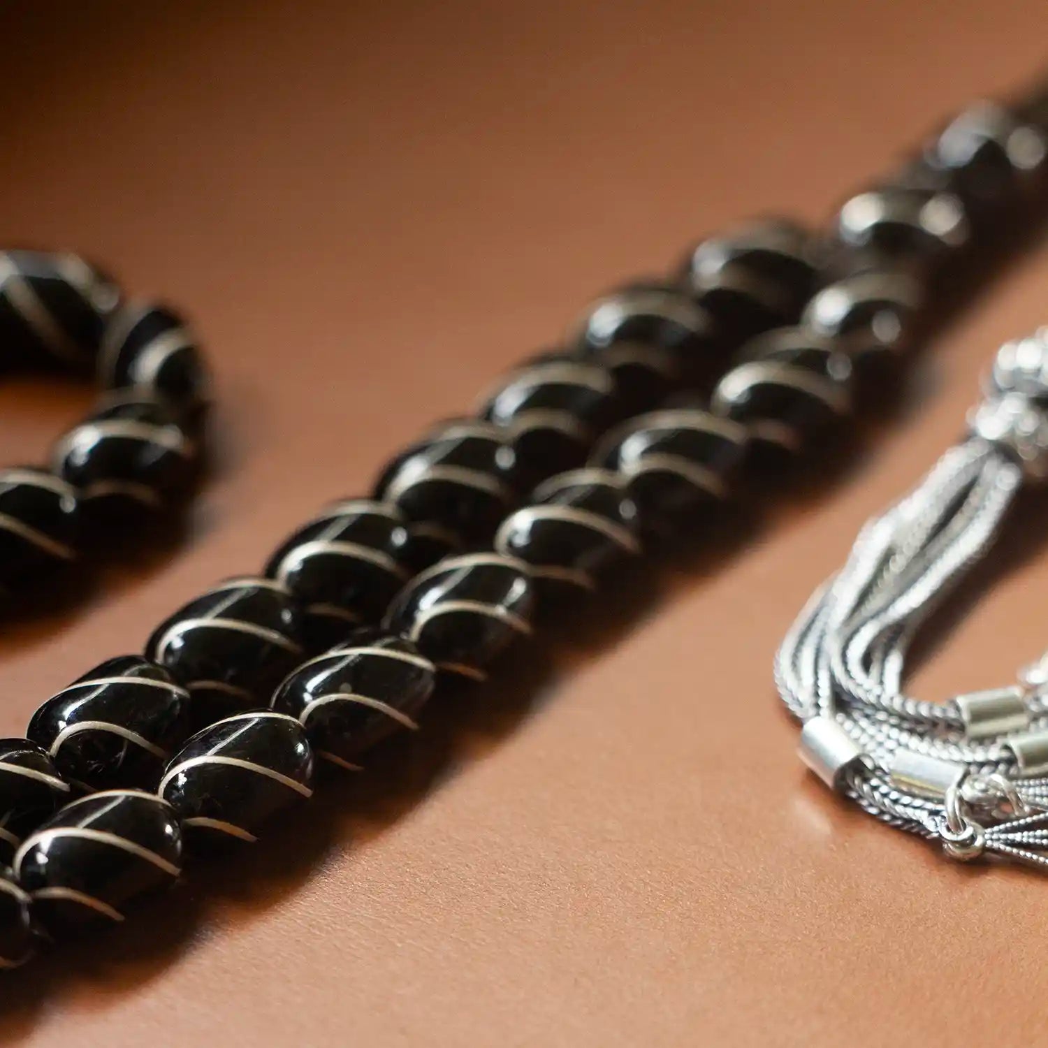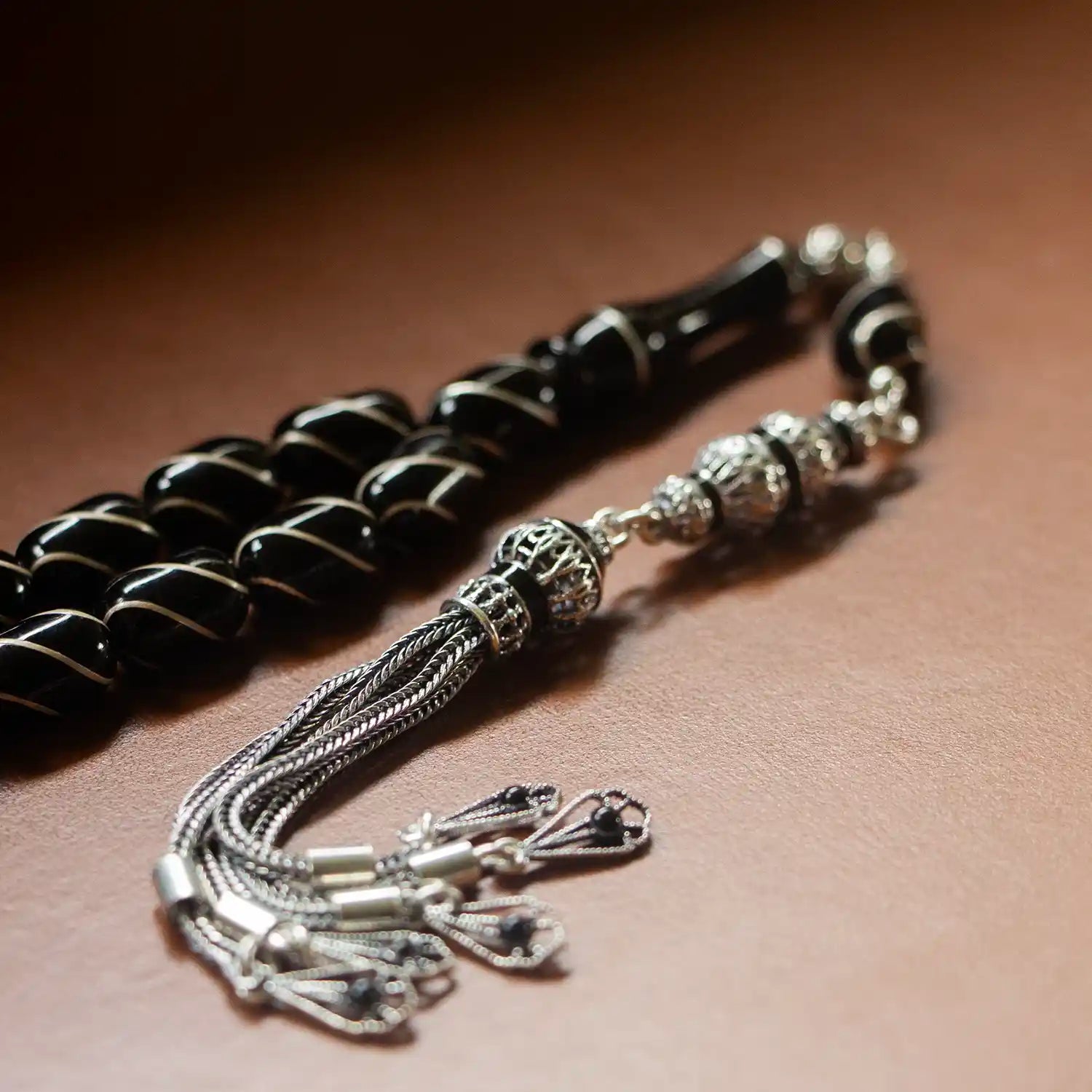 Gümüş İşlemeli Orjinal Erzurum Oltu Tesbih – Gümüş Püsküllü Premium Koleksiyonluk Tesbih